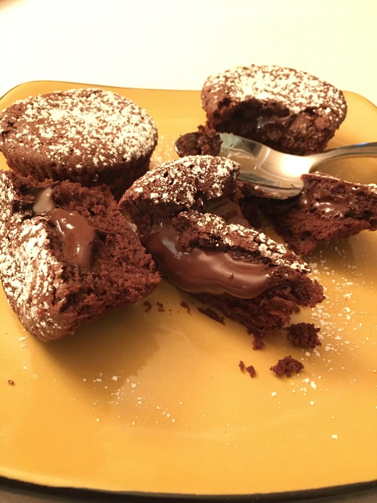 This recipe called for dark chocolate. Dark chocolate means the chocolate you are using can be made with sugar and cocoa but cannot be made with any sort of milk product. In Europe dark chocolate is identified by a percentage of cocoa of 35% or more and in the US there is no minimum. The percentage refers to the amount of cocoa particles in in a product. Since in this recipe the book did not give me any indication on what percentage to use I used 70% dark chocolate. I would do this again too it made for very rich cakes which is to my preference. However! While I used 70% for the cake, I used a semi-sweet 56% for the chocolate filling. This was not a problem for me, but surprisingly my very chocolate acquainted husband registered the difference and to my disappointment did not like them as much because of this.