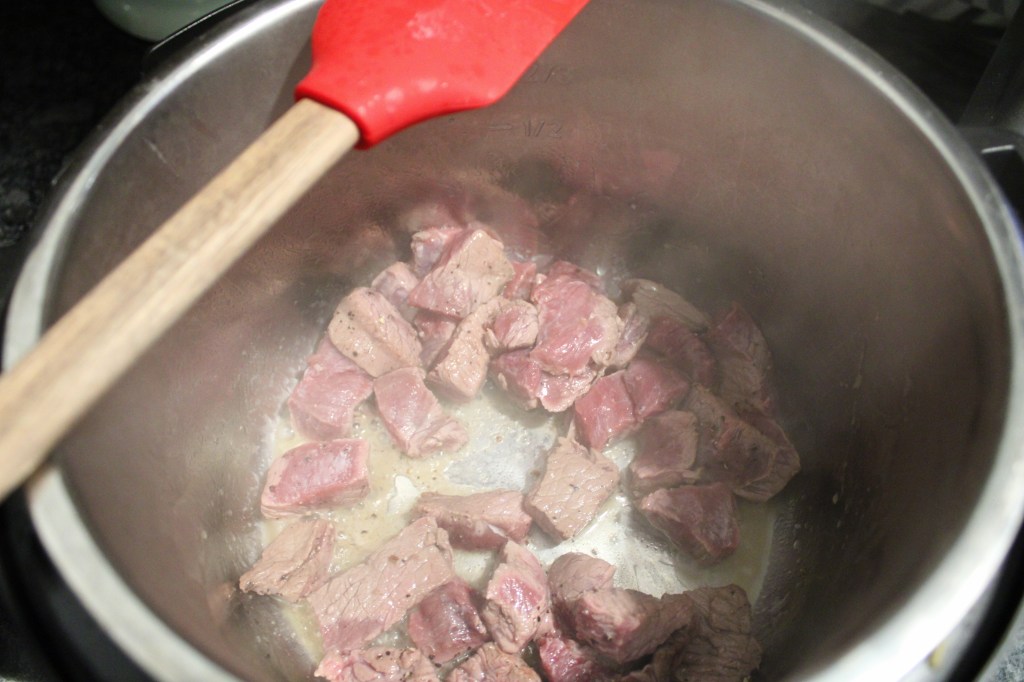 - If using an Instapot place your setting on sauté and brown the meat with a small amount of olive oil. Once browned pull out and set to the side. (If using a crock pot brown the meat in a skillet and then set to the side)